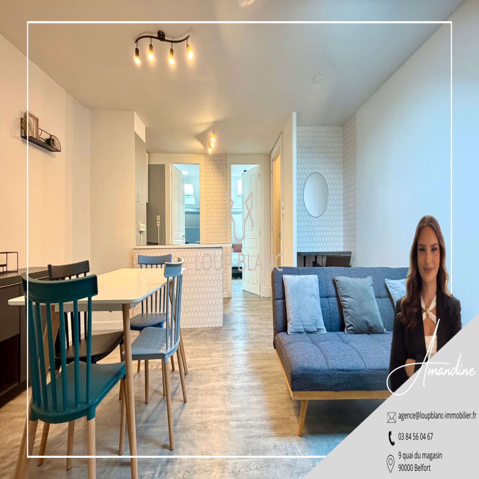 LOUP BLANC Immobilier vous propose à la location cet appartement T2 meublé de 45.65m² situé à Belfort, rue Émile Zola, au 5ᵉ étage d’une copropriété sécurisée.