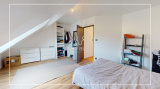 Au deuxième et dernier étage, il se compose d'un hall d'entrée, d'une belle pièce de vie lumineuse, avec accès à un balcon, d'une cuisine équipée, de deux chambres, d'un espace bureau (pouvant faire office de troisième chambre), donnant également accès au balcon, et d'une salle d'eau avec WC.