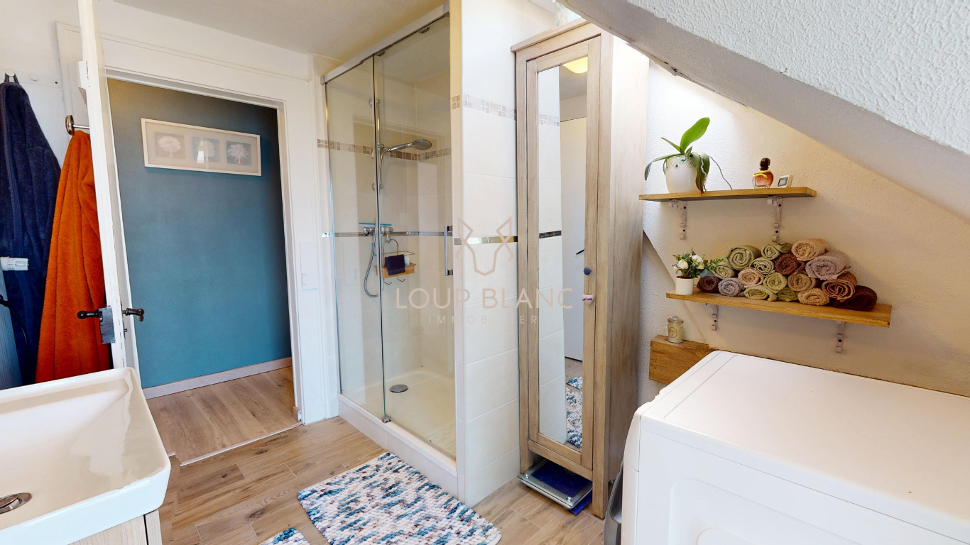 Une pièce de rangement jouxte également la pièce de vie, permettant, avec peu de travaux, d'obtenir une chambre supplémentaire ou d'agrandir la pièce de vie.
