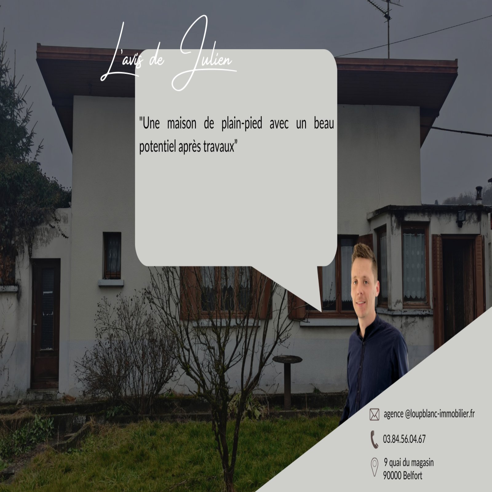 LOUP BLANC Immobilier vous présente à la vente, sur la commune de Taillecourt, une maison individuelle de plain-pied de 50m², édifiée sur un terrain de 3 ares.