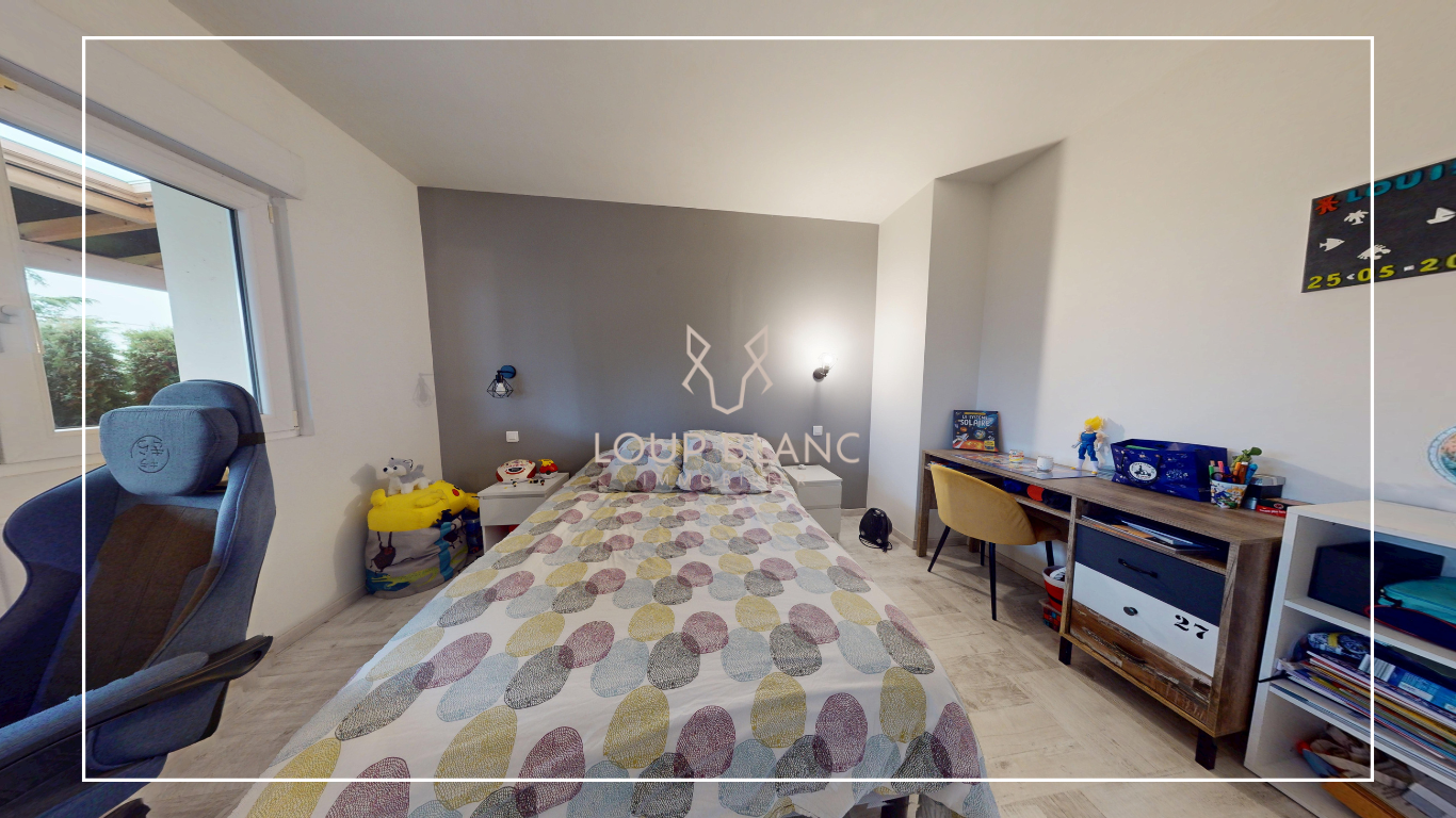 Côté extérieur, vous profiterez d'une cour, d'un terrain de pétanque, d'une piscine semi-enterrée et d'une deuxième terrasse couverte, le tout sur un grand terrain arboré et clôturé.