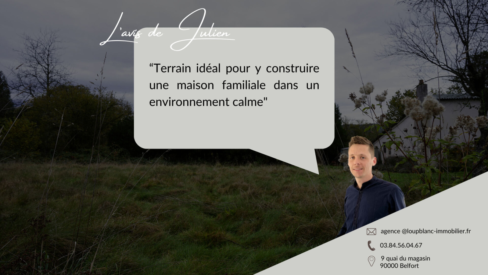 L'avis de Julien: 'Terrain idéal pour y construire une maison familiale dans un environnement calme' Contactez nous pour plus d'informations !