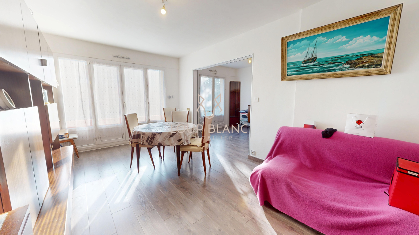 D’une surface de 77,06 m², il se compose d’une entrée, d’un vaste salon-séjour lumineux avec accès à un balcon, de deux chambres, d’une salle d’eau, et d’un WC indépendant. Une loggia, accessible depuis la pièce de vie et le balcon, complète également ce bien, refait récemment à neuf.