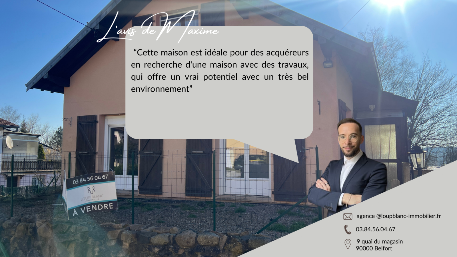 L'avis de Maxime 'Cette maison est idéale pour des acquéreurs en recherche d'une maison avec des travaux, qui offre un vrai potentiel avec un très bel environnement'